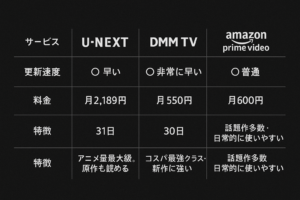 U-NEXTとDMM TVは、アニメ更新の瞬発力がとにかくすごい。