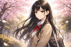 宵は高身長で整った顔立ち。パンツスタイルが自然に似合い、教室の空気を一段引き締める存在感を持つ。
