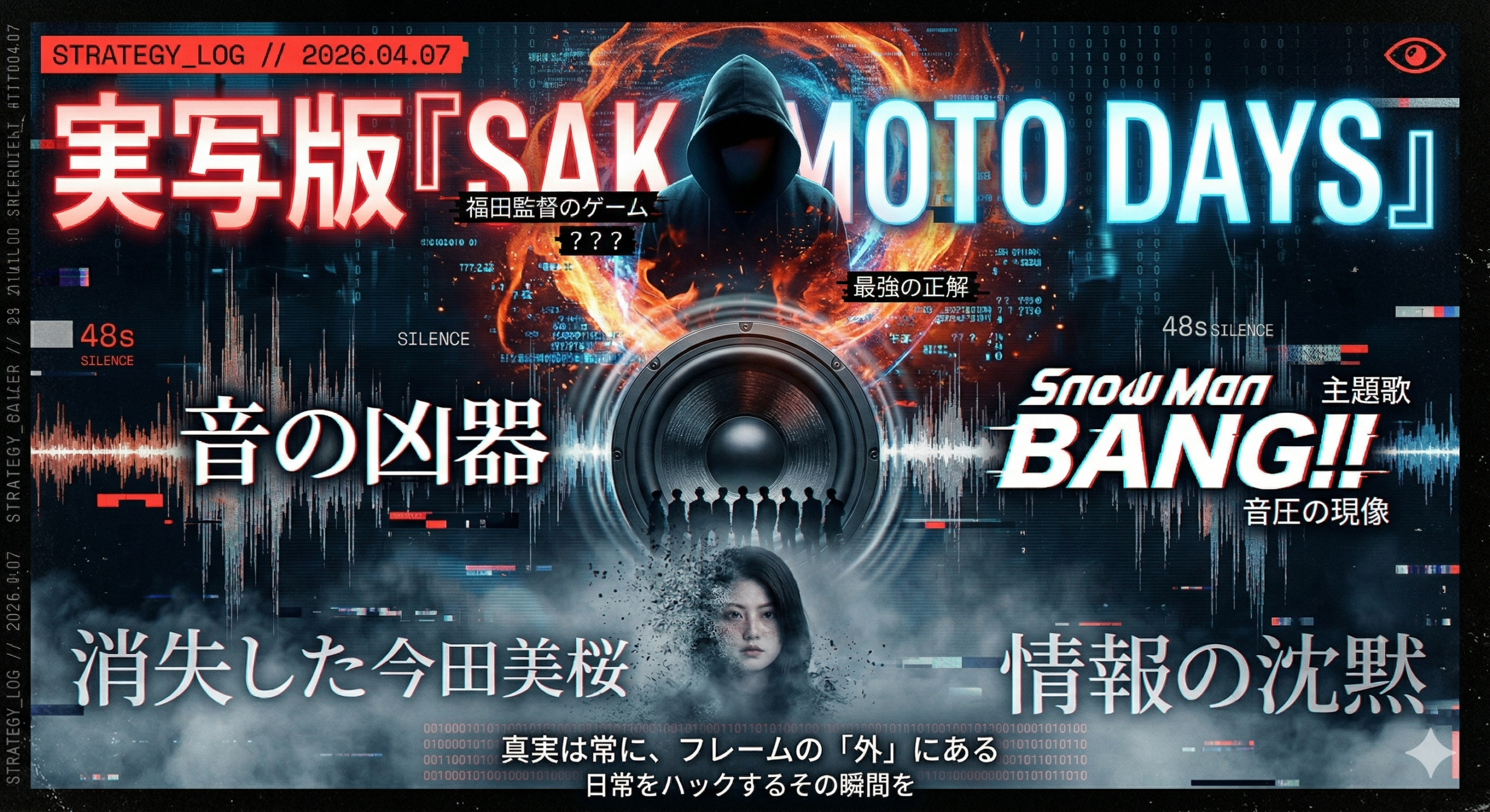 2026年4月29日、ロードショー。今夜も公式サイトを蝕む不可解なノイズは、僕たちの予想という安価な娯楽を嘲笑うかのように増殖しています。配役とは、真実を守るための最も美しい嘘。実写版『SAKAMOTO DAYS』という巨大な「企み」が、日常をハックするその瞬間を、僕と一緒に見届けませんか。