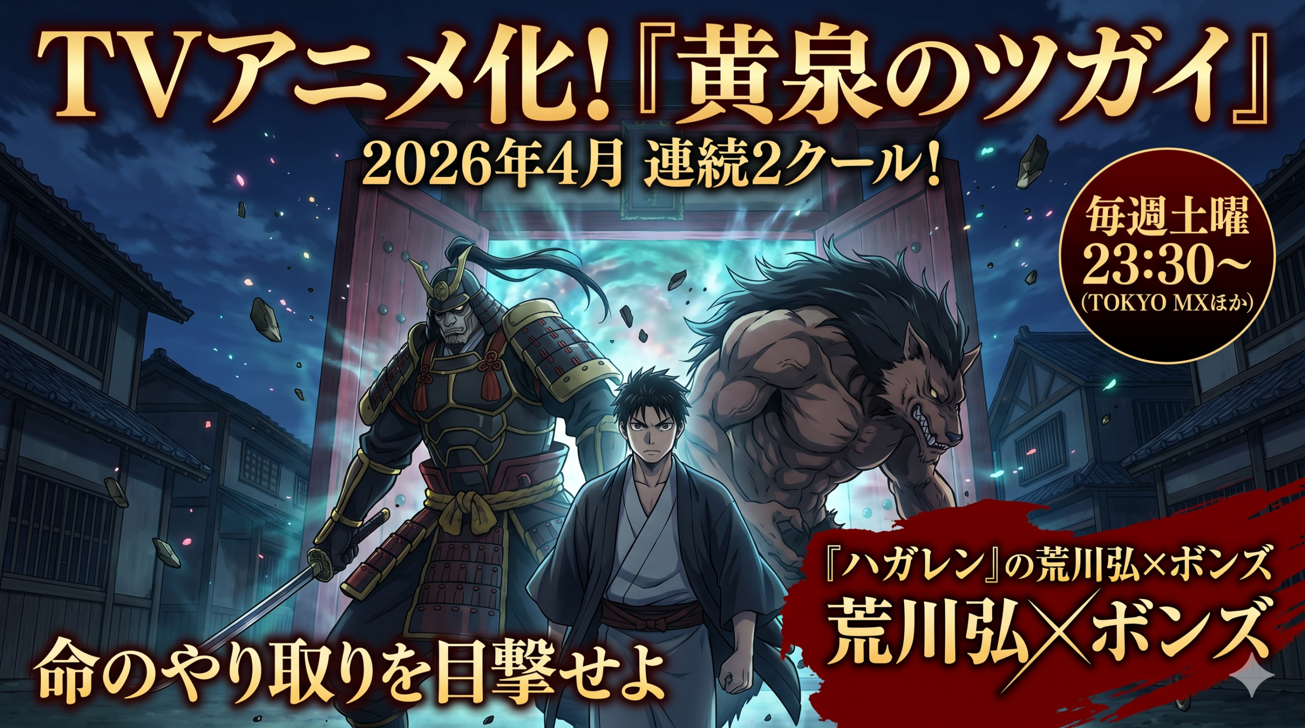 現在放送中の『黄泉のツガイ』。ボンズ特有の重量感と滑らかさが共存する圧倒的な作画力、そして荒川先生の容赦ない「命のやり取り」が交差する本作は、すでにSNSで毎週のように熱を帯びた考察の嵐を巻き起こしています。