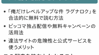 アニメ 成長ヒストリー 俺だけレベルアップな件 ラグナロクを無料で合法的に読む方法 『俺だけレベルアップな件 ラグナロク』は、世界的に人気を誇る「俺レベ」シリーズの続編として注目を集めている漫画です。しかし、「無料で読めるの?」「違法サイトではなく、安心して楽しめる方法はあるの?」と気になっている方も多いのではないでしょう... 2025.09.29 アニメ 成長ヒストリー